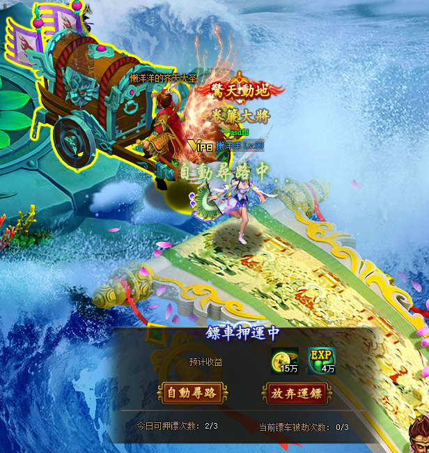 ,便可进行运镖了,运镖过程可能会遭受到别人的打劫哦,失败可是会被抢走一部分奖励哦