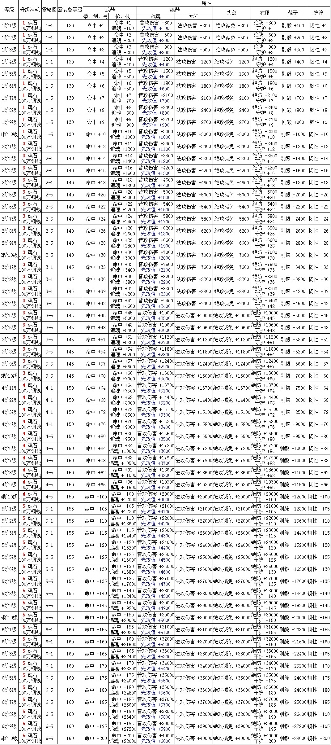以下是神仙道神装系统各部位装备神装数据,仅供道友参考: